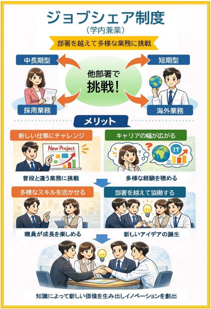 TOP / 取組4:マネジメント人材育成・強化 / 部署を越えて、新しい挑戦を!ナレッジワーカーを育てるジョブシェア制度始動
