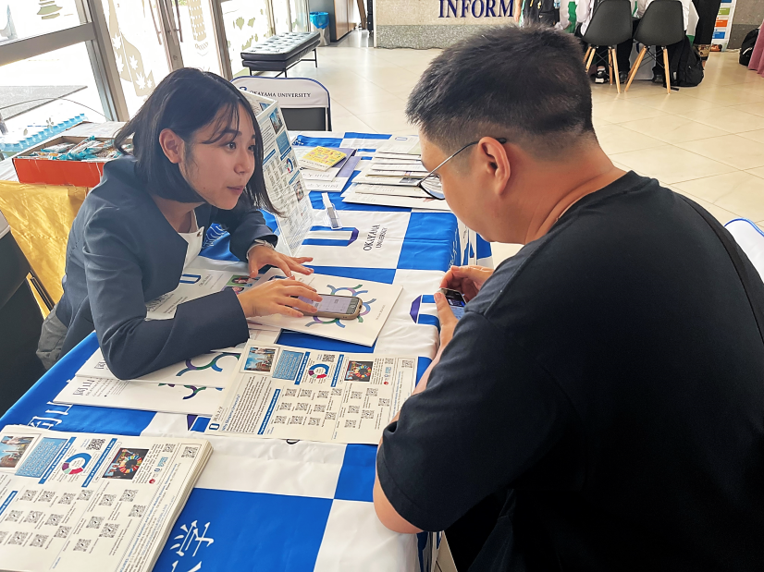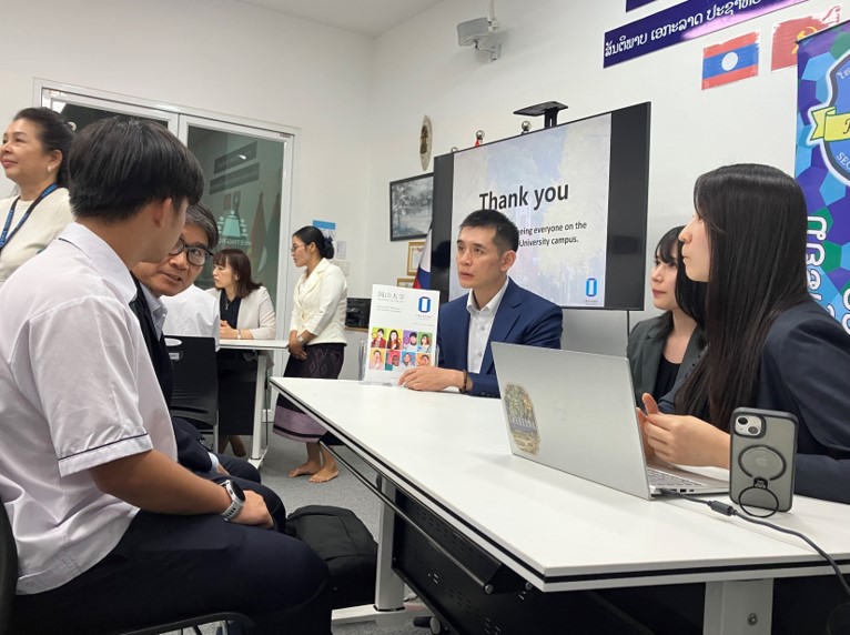 初回となるジョブシェア制度では、国際部門以外の部署から選抜された事務職員がラオス・カンボジア・タイに渡り、日本留学を希望する学生へ本学の取組を紹介、国内外機関との交流を実施しました。異なる部署の職員が協働し、留学生のニーズや海外の教育機関・国内外の大学の取り組みを知り、現地の活気ある状況を体感したことは、今後の業務において意識すべき点を改めて見つめ直す、貴重な機会となりました。